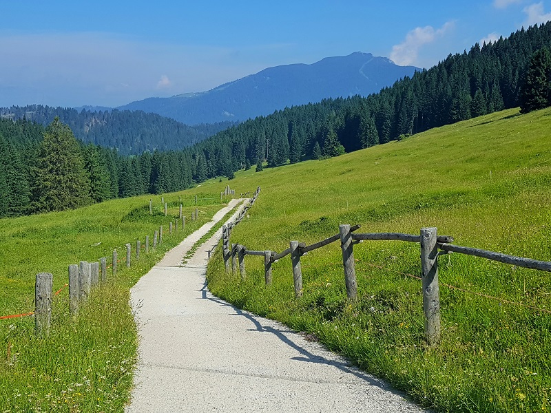 Potete posteggiare la macchina nell’ampio parcheggio dell’hotel Ortesino, dopo un breve tratto sulla strada principale ci si ritrova davanti alla strada sterrata che porta in malga. La passeggiata, lunga un paio di chilometri, è piacevole, anche se in costante salita (percorribile con un passeggino da trekking). Un’idea su come coinvolgere i bambini nel cammino senza che sentano la fatica? Invitateli a partecipare alla caccia al tesoro delle fragoline di bosco: qui nella giusta stagione lungo il sentiero ne troverete moltissime! Unica accortezza: visto che è possibile raggiungere la malga in macchina bisogna fare attenzione alle rare auto che si possono incontrare.