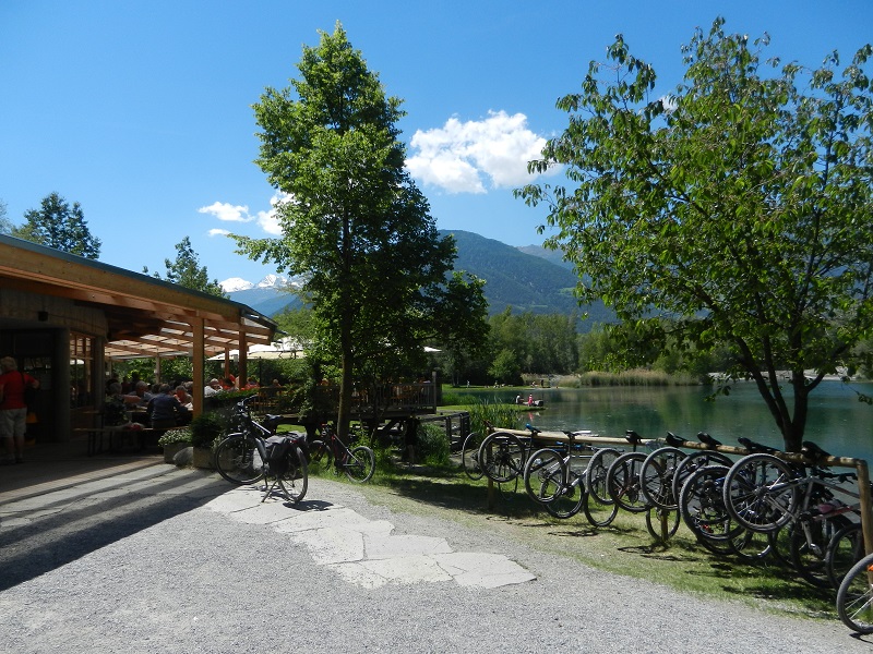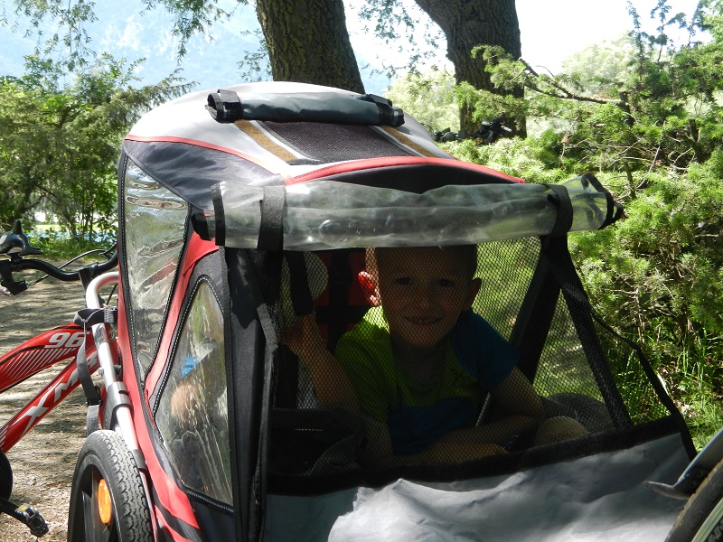 Per quanto riguarda i bimbi più piccoli, nessun problema: alla stazione ferroviaria di Malles si trova un fornitissimo noleggio con biciclette di vario tipo, seggiolini o i carrelli coperti (a 2 posti) da attaccare alla bici, che permettono loro di stare comodamente seduti e di schiacciare un tranquillo pisolino. Noi abbiamo noleggiato proprio uno di questi indispensabili carrelli, alternandolo un po’ al seggiolino (costo: 12 € per tutta la giornata, ritirato a Malles e consegnato alla stazione di Merano, meglio prenotarlo telefonicamente il giorno prima allo 0473 201500). Potete anche consultare il sito www.suedtirol-ad.com dove è possibile visionare tutte le bici e accessori disponibili al noleggio.