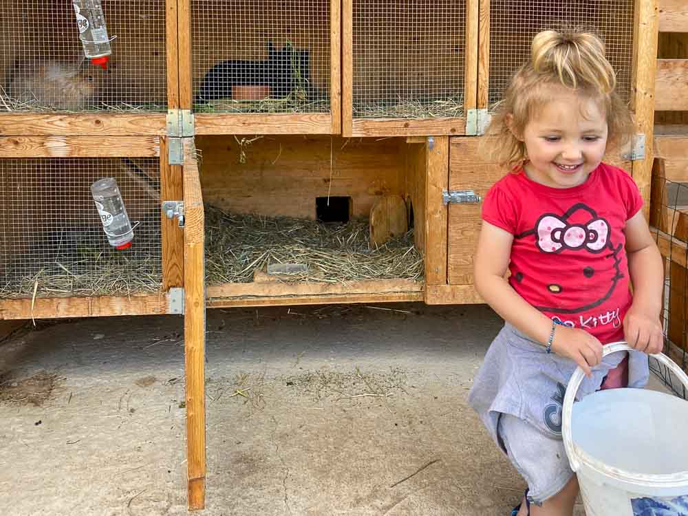 Ci sono poi le galline, preziose per le loro uova, e i coniglietti. Anche loro super golosi!