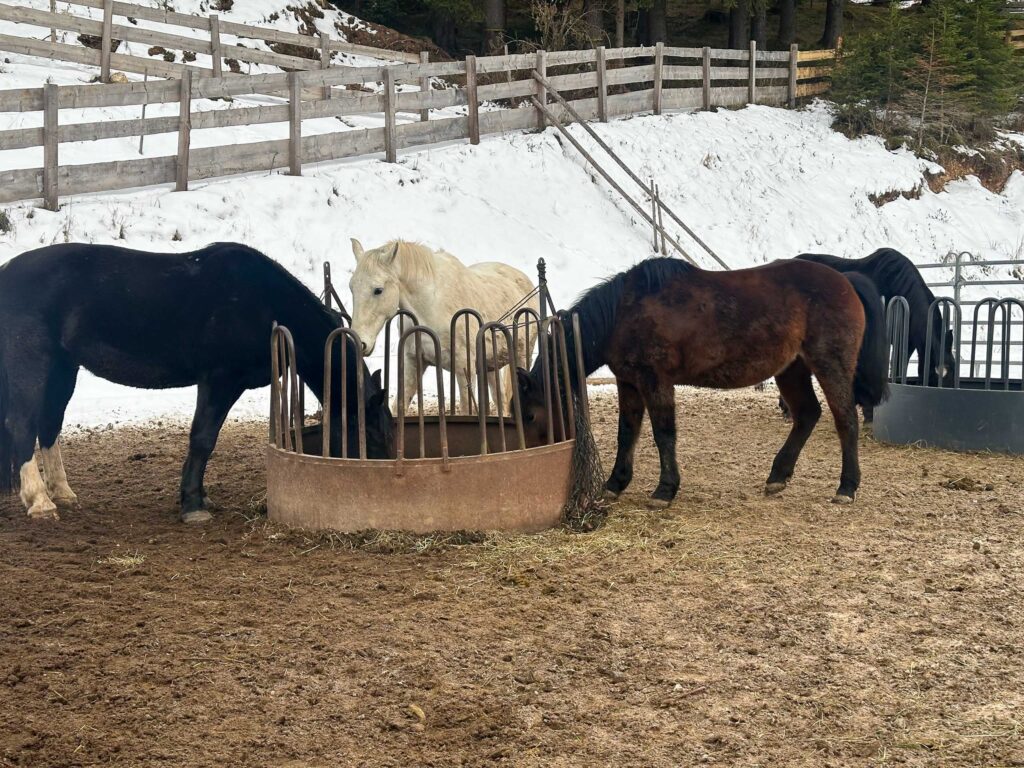 Le mucche invece sono della razza Pustertaler Sprinze, autoctona, mentre i cavalli sono di diverse specie, uno più bello dell’altro. E deliziosi sono i pony, che possono essere anche cavalcati fino ai 6 anni circa dei bambini.