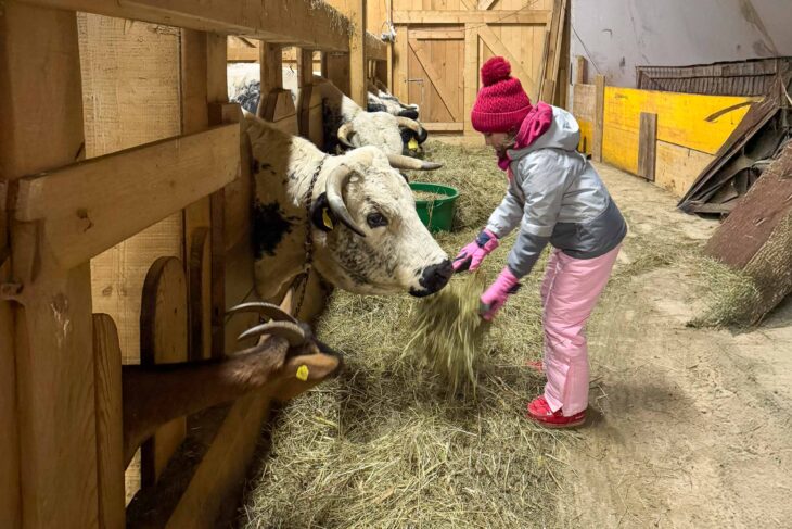 Innanzitutto la fattoria, dove ci sono una cinquantina di capre (razza svizzera Walliser) che ogni mattina e ogni tardo pomeriggio devono essere munte… Jonas vi aspetta! In accordo con i contadini, si può infatti dare una mano nella vita della fattoria… tra mungere, dare da mangiare agli animali, spalare la neve, sarà una bellissima esperienza!