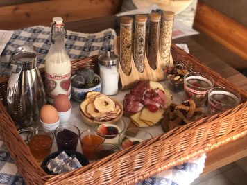Quella della colazione nel cesto è una caratteristica dei masi aderenti all’associazione del Gallo Rosso che amo particolarmente: la possibilità di gustare prodotti buoni e genuini, spesso home made, ancora in pigiama 🙂