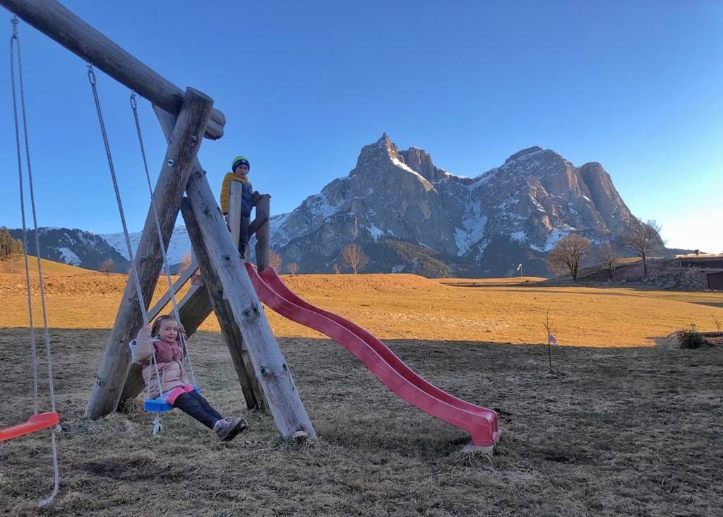 Piccolo, ma carino, il parco giochi accanto al maso, in una splendida posizione panoramica. Tra l’altro Lukas e Nadia, i due piccoli di casa, saranno felici di condividere il loro tempo libero con nuovi amici! E vedrete che meraviglia poter salire sui cavalli di Stefan… sarà un’esperienza indimenticabile!