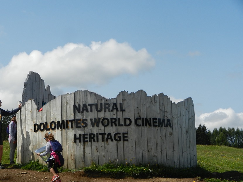 Poi, una delle stazioni più belle dal punto di vista del paesaggio: il Cinema Natural World Heritage, uno spettacolare punto panoramico! Con il potente cannocchiale potete vedere da vicino il meraviglioso scenario delle Dolomiti, il parco naturale Puez Odle e le imponenti montagne del Sassolungo e Sassopiatto alle nostre spalle.