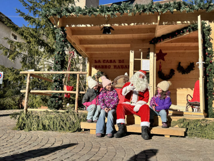 Un luogo incantato dove potrete conoscere Babbo Natale, gli operosi elfi e vivere emozioni indimenticabili! Per raggiungere la sua casa, appositamente allestita in paese, dovrete percorrere un sentiero magico che vi trasporterà direttamente in Lapponia. Nella magia dell’aurora boreale potrete incontrare Babbo Natale, consegnargli le letterine e confidargli i vostri desideri che poi saranno trascritti nel libro magico. La Casa di Babbo Natale è visitabile tutti i giorni di apertura del mercatino dalle ore 11.00 alle ore 18.00.