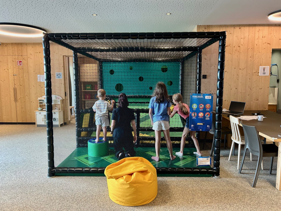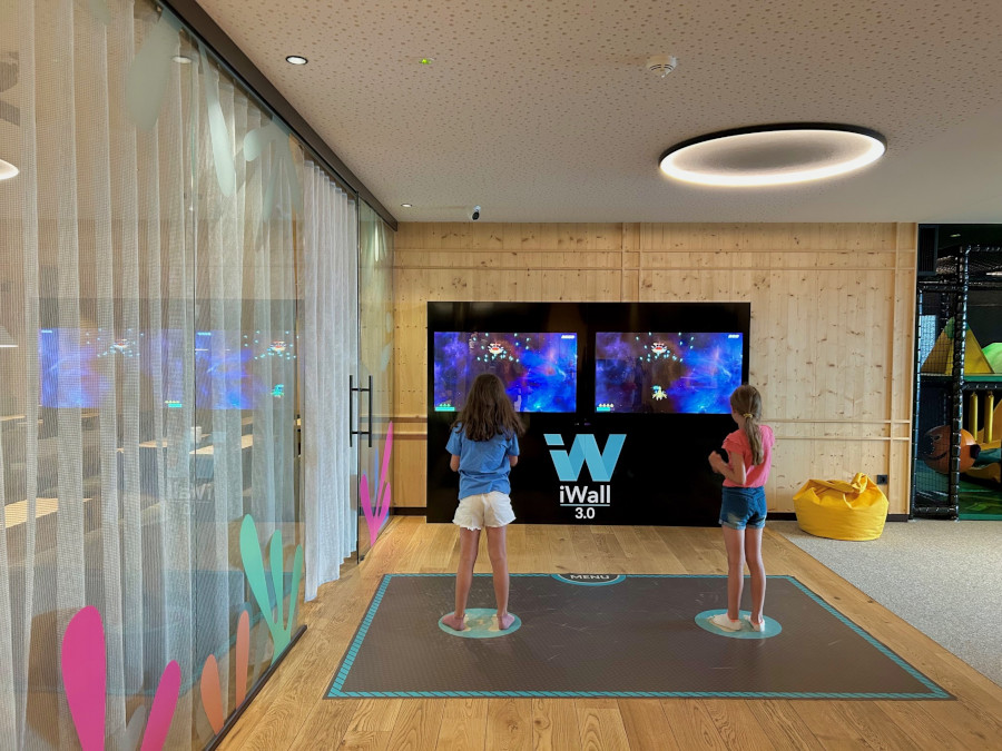 La zona interna dedicata ai bambini è fantastica! Si tratta di uno spazio di 150 m² con un playground dotato di scivoli, vasca con palline, percorsi e angoli morbidi. Una postazione di tiro al bersaglio per mettere alla prova le proprie abilità, un angolo biblioteca, un piccolo regno delle costruzioni e altri giochi per tutte le età. Non poteva mancare l’amato I-wall, che con i suoi svariati contenuti permette di diventare parte del gioco sia da soli che in compagnia. Un modo interattivo per tenersi attivi giocando!