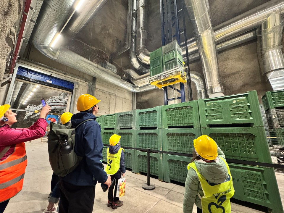 - vedere in azione l’ascensore alto 26 metri, che porta i cassoni ad un altro piano (tre quelli presenti)