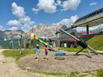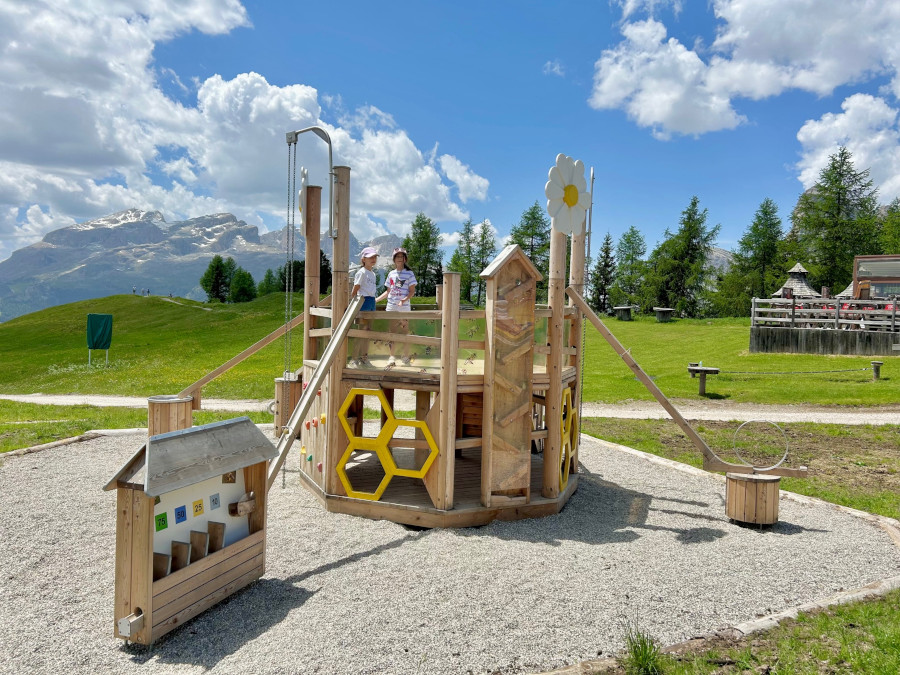 Questo parco è stato interamente rinnovato e si può raggiungere comodamente con l’ovovia del Piz La Ila a La Villa, oppure e piedi/bici dal Piz Sorega o dal Col Alto. Al centro del parco due iconiche e simpatiche MM, che si possono scalare ed esplorare prima di scendere dai lunghi scivoli gialli laterali. Che vista dagli oblò!