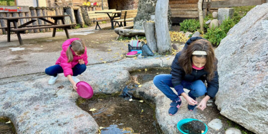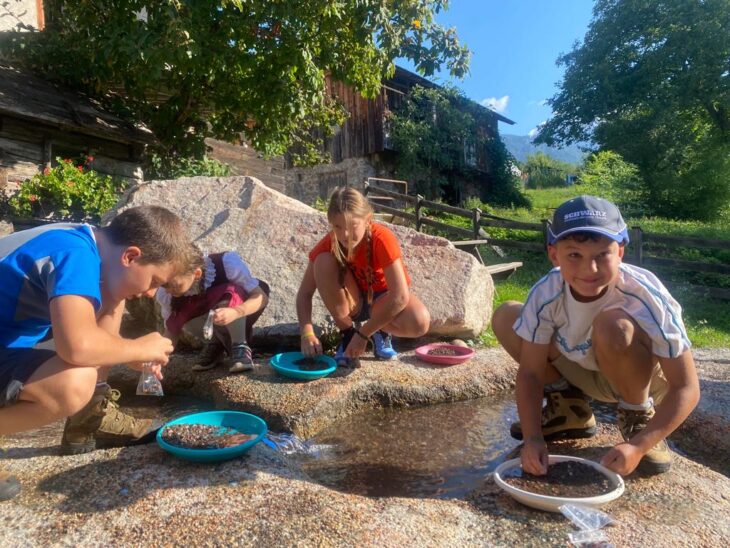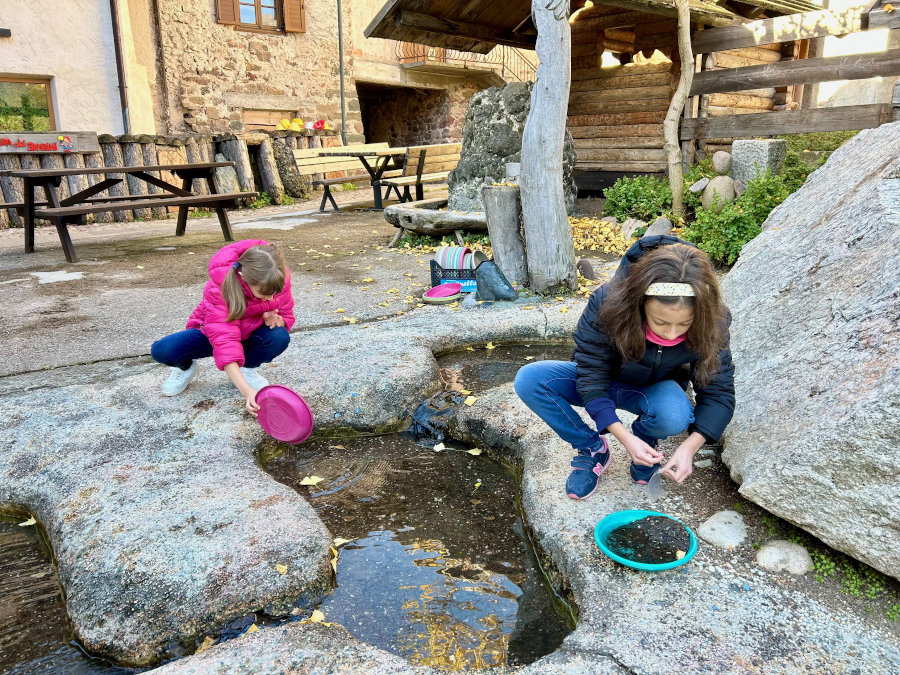 All’esterno c’è una miniera da esplorare con il caschetto e soprattutto una divertentissima attività alla ricerca dell’oro: nel torrente in giardino con il setaccio si trovano infatti pepite d’oro e pietre preziose.