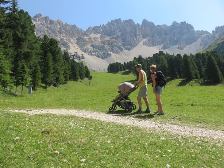 La partenza dell’escursione è la seggiovia che da Obereggen in Alto Adige (1 ora circa in auto da Trento) conduce al Rifugio Oberholz. Essendo un percorso ad anello potete anche iniziare l’itinerario da malga Mayrl, che si raggiunge attraverso il bellissimo sentiero Latemar.Alp che parte dalla stazione a monte della seggiovia Latemar (la stazione a valle è a Pampeago, circa 2o minuti da Cavalese). Il percorso è fattibile anche con passeggini da trekking (noi vi suggeriamo tuttavia di compiere sia in andata che al ritorno la parte bassa che collega Oberholz a malga Mayrl perché la metà più alta del percorso, che si sovrappone al percorso Latemar.Panorama, è piuttosto scomoda in passeggino.