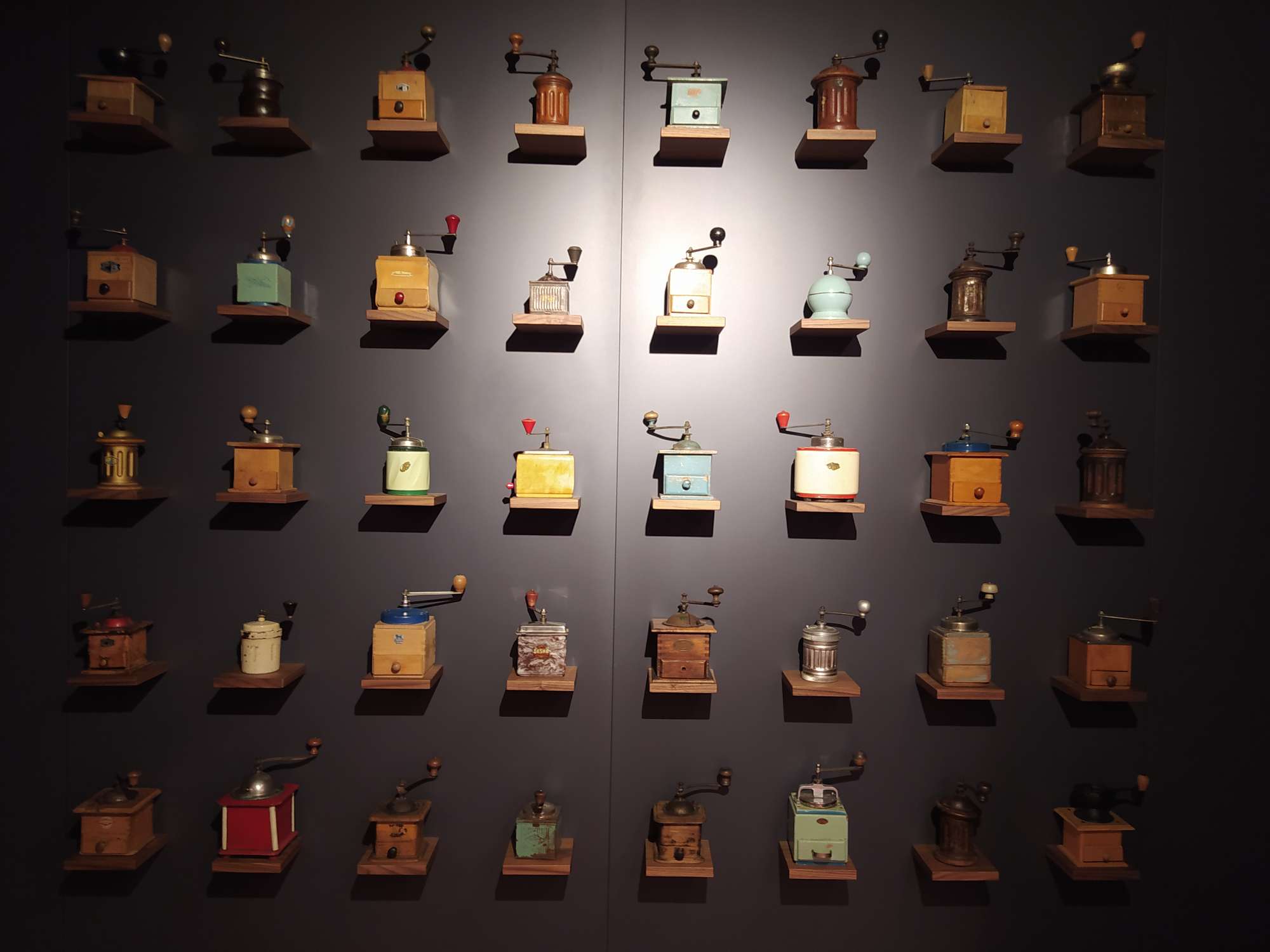 Non solo, il divertimento continua con i rulli su cui scoprire i tanti e diversi modi di bere caffè nel mondo. Espresso, americano, corretto, shakerato…c’è chi lo beve con i tuorli dell’uovo, chi con spezie, chi persino con l’aggiunta di marshmallow… le combinazioni sembrano infinite! Non manca l’oggettistica, tra cui moke, recipienti e strumenti di varie fogge e provenienze per la preparazione del caffè. Molto carino il muro scuro di fondo sul quale trovano collocazione numerosi piccoli macinacaffè colorati! Anche la collezione di macchine da caffè da bar merita attenzione.