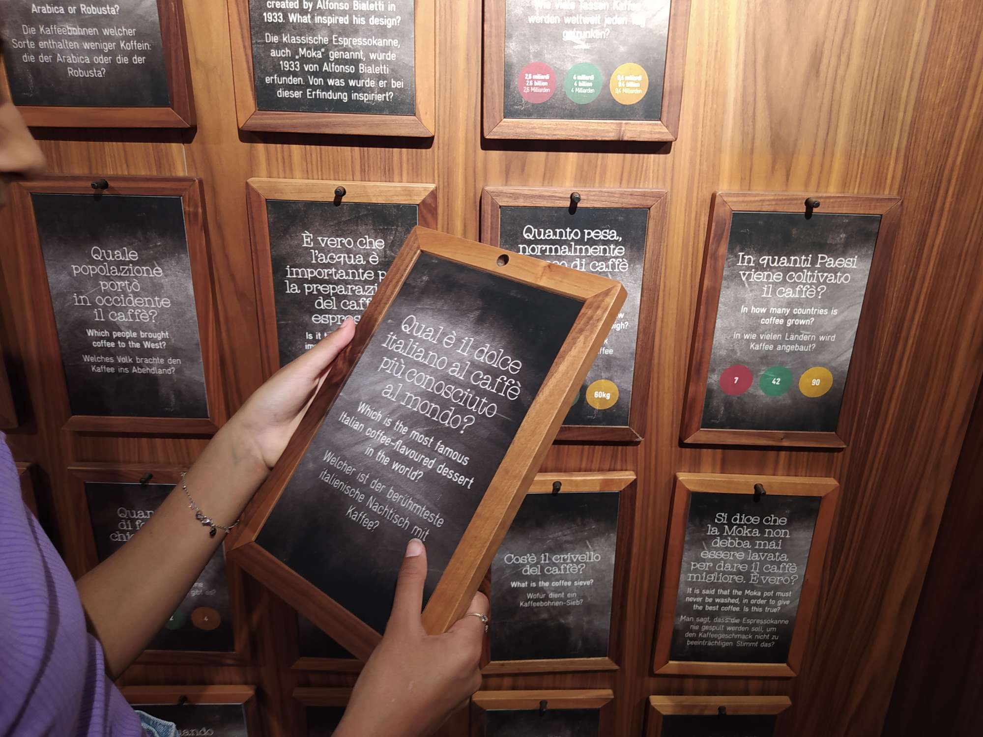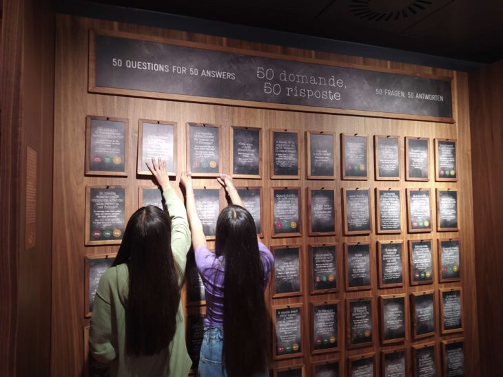 Interessante per i bambini soprattutto la parete con 50 lavagnette, ognuna delle quali riportante un quiz sul caffè: basterà staccare la lavagnetta e girarla per leggere la risposta, ma prima provate ad indovinarla! Ad esempio, sapete che cos’è un caffè sospeso? E un caffè verde?