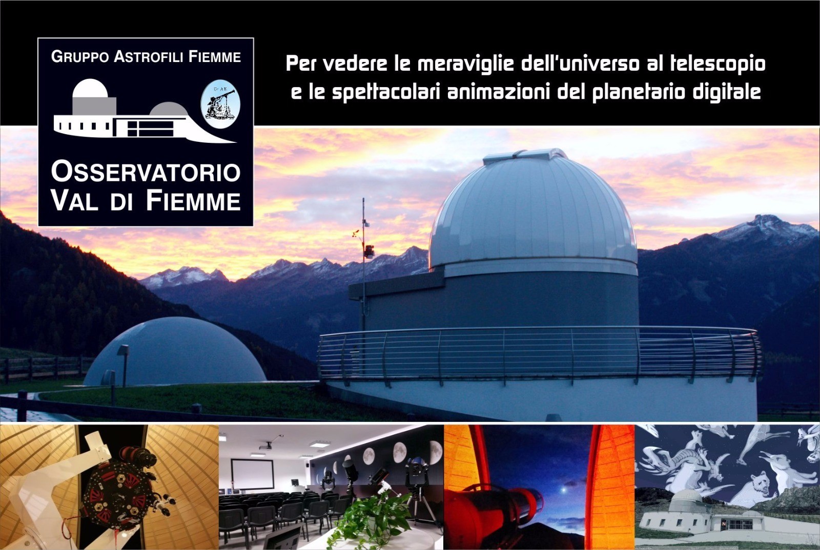 La location è incantevole ed è perfetta per aggirare le luci urbane che disturbano l’osservazione e la comodità nel raggiungerla. Il Gruppo Astrofili Val di Fiemme, un gruppo eterogeneo di persone che condividono la passione per l’astronomia e il pensiero scientifico, sa perfettamente che osservare il cielo da un punto privilegiato è un’esperienza indimenticabile, uno spettacolo straordinario che permette di spaziare nelle profondità dell’Universo. Per questo l’Osservatorio è un vero fiore all’occhiello della valle. Cosa si può vedere? Un cratere sulla superficie della Luna magari o la danza dei satelliti di Giove, la fiammeggiante fotosfera solare o l’immensità di una galassia, per entrare magicamente in una dimensione nuova e maestosa e ricordare la grandezza della Natura.