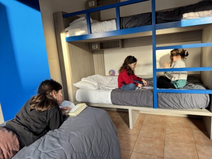 Al loro interno troverete lenzuola e teli da bagno, oltre a (su richiesta) spondine, lettini, seggioloni e scaldapappe. La colazione a buffet (bisogna sparecchiare: ottimo per coinvolgere i bambini!) è compresa nel prezzo, e c’è anche un angolo ristoro con frigorifero, microonde e stoviglie. Disponibile anche il servizio di lavanderia. Presso l’ostello potrete trovare anche un Baby point, per allattare o cambiare il proprio bebè, un’area giochi, una sala tv e un angolo lettura.