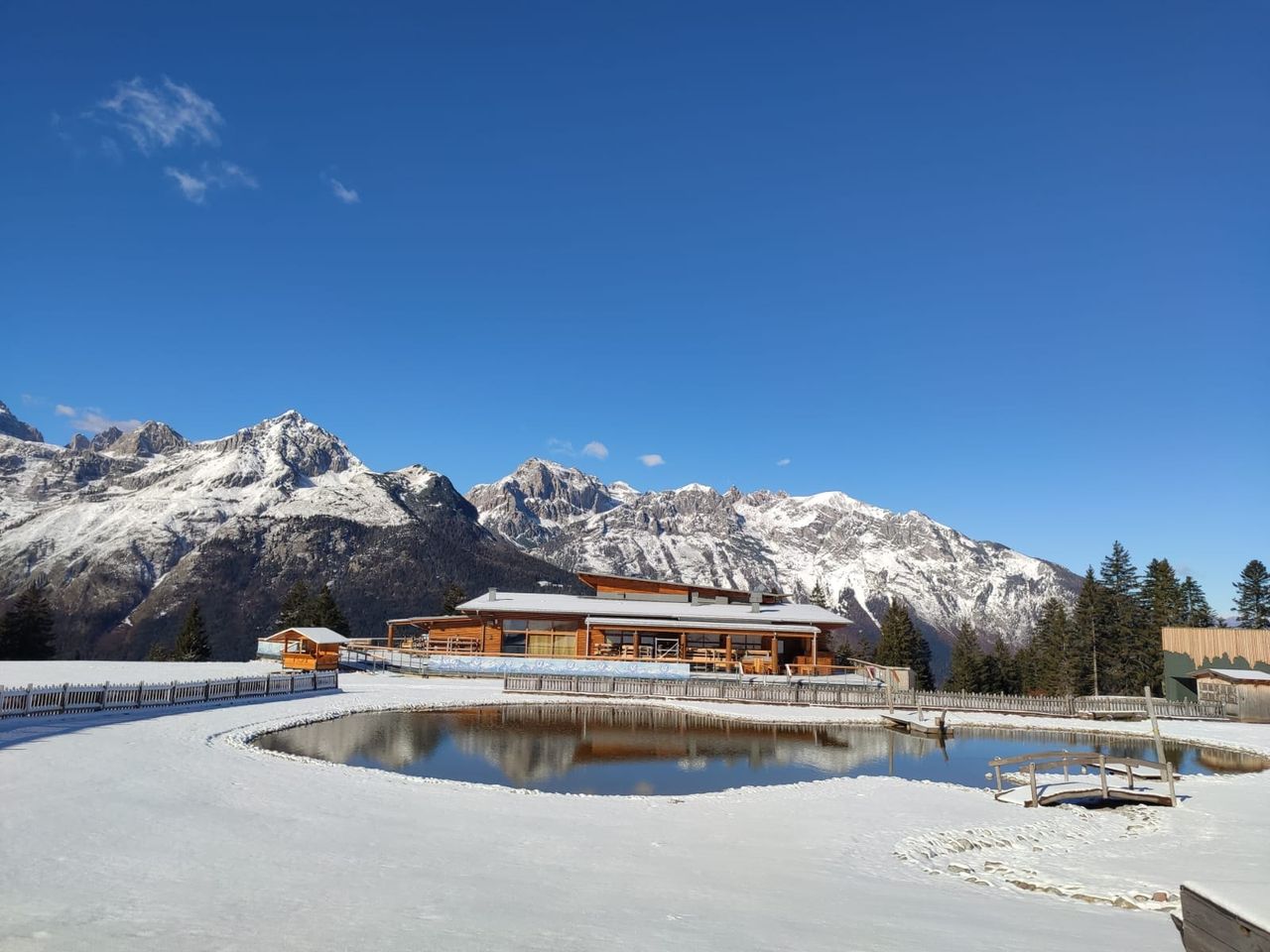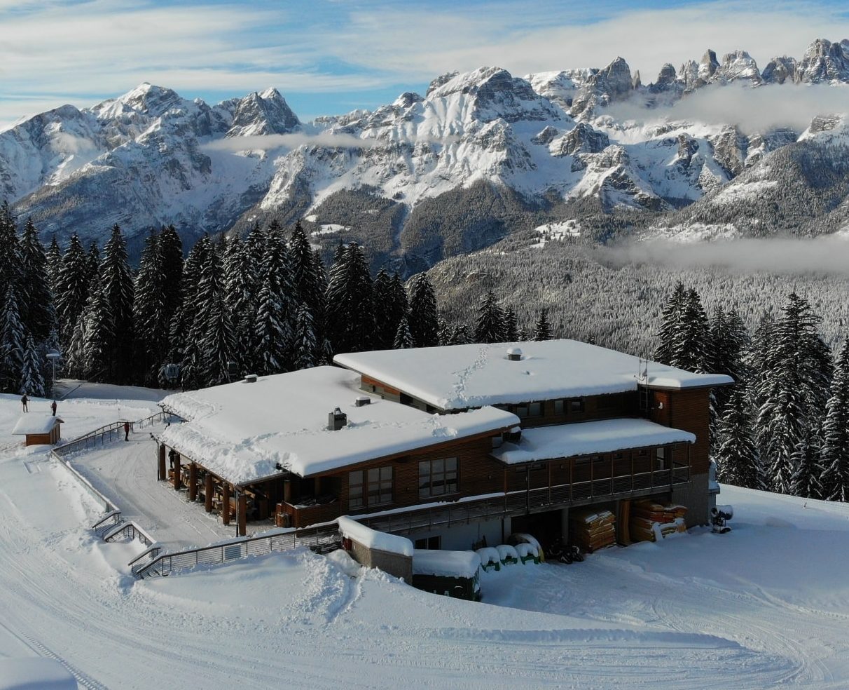 Ideale per pranzare all’aperto godendo del meraviglioso paesaggio con il Campanil Basso e tutte le sue cime innevate, troviamo un’area relax con solarium e sdraio, un terrazzo panoramico sulle Dolomiti di Brenta e tanti sentieri da percorrere a portata di mano, anche in inverno.