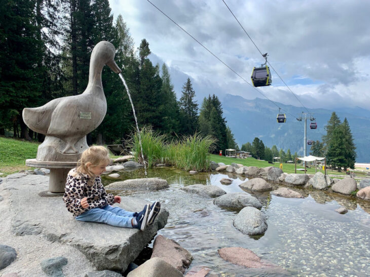 Prendete la cabinovia (tariffe e orari qui) e scendete al primo troncone in Località “le Fassane” qui troverete il parco giochi Giro d’Ali: laghetti, percorsi Kneipp, giochi interattivi e tanto divertimento per grandi e piccini. Attorno all’area c’è il sentiero tematico di Frainus, molto semplice e adatto a tutti con diverse postazioni gioco.