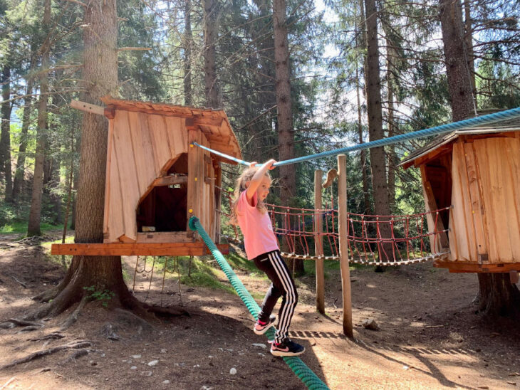 Il parco di Villabassa in Val Pusteria. Un po’ lontano (si raggiunge in un paio di ore) ma davvero da visitare almeno una volta. Il parco è diviso, da un ponte, in due zone: una per i piccolini con scivoli, altalene e la sabbiera e l’altra per i bambini più grandi con la carrucola, le casette sugli alberi e le torri da scalare. Particolare unico di questo parco è il gazebo rivestito con i rami di pino mugo dove si entra, si respira la natura e ci si rigenera. Tutte le informazioni QUI.