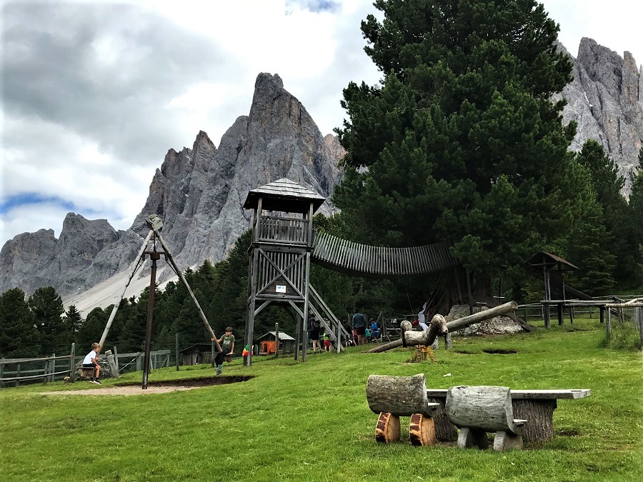 Per raggiungere questo parco vi facciamo caminare un po’… ma ne vale la pena. Al rifugio Odle (raggiungibile con una passeggiata di circa 2 ore da Malga Zannes) il divertimento tra giostre e grandi giochi di legno da scalare è davvero assicurato! Tutte le informazioni QUI.