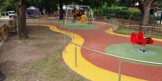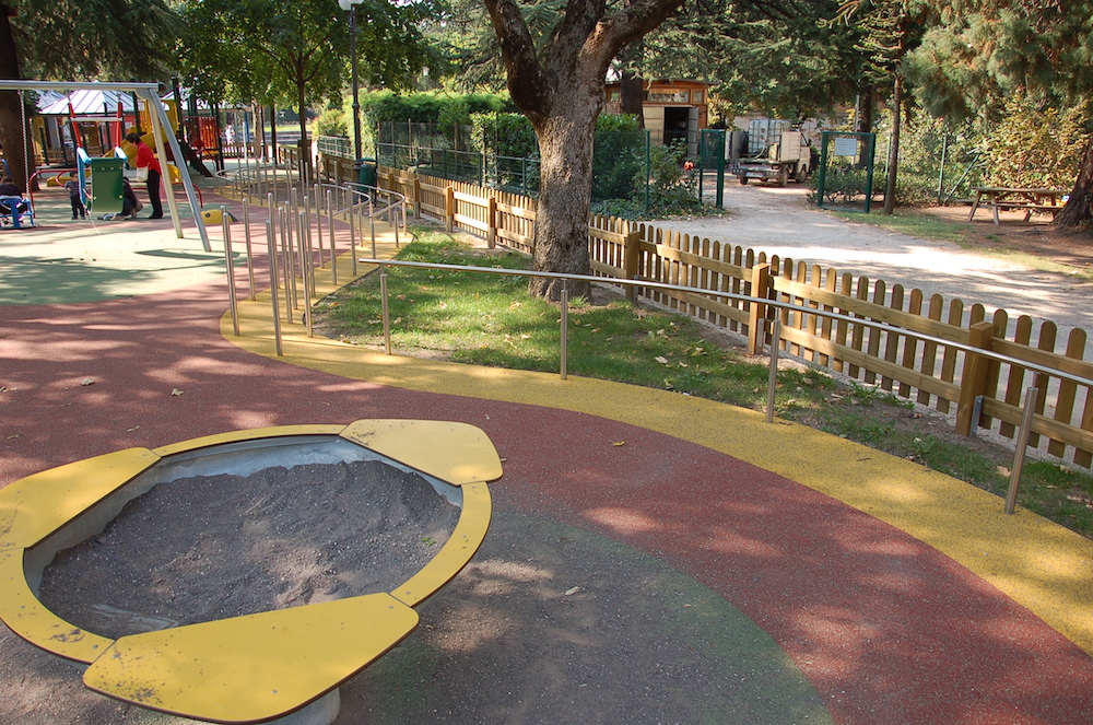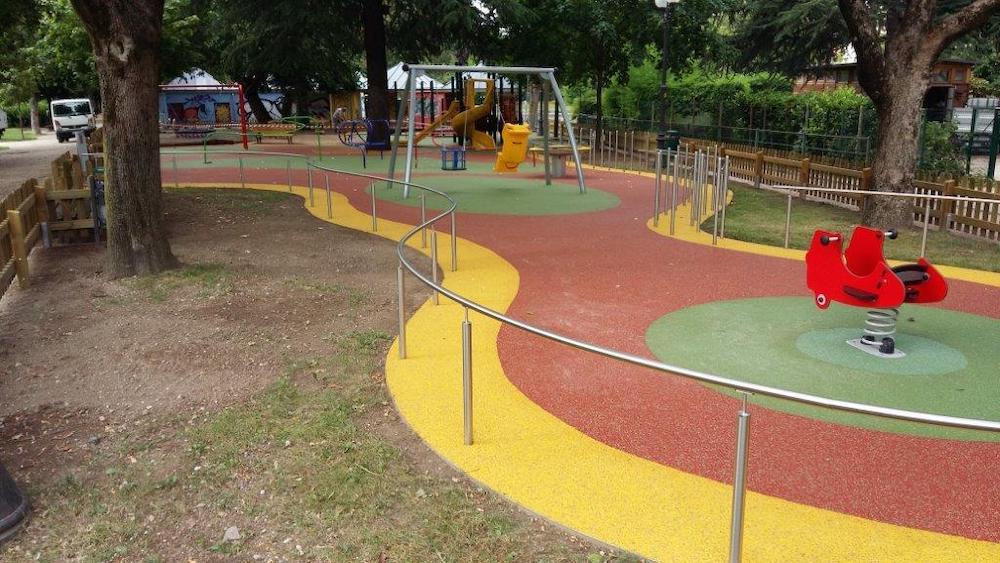 BOLZANO (BZ) | Inclusive Park Petrarca (vicino al bar “Orso Pippo”) – questo è un parco totalmente inclusivo con strutture integrate adatte a bambini con disabilità diverse e un corrimano in acciaio per esercizi di riabilitazione motoria. La pavimentazione dell’area è tutta in colato di gomma di diversi colori per poter accedere facilmente, anche con carrozzine e sedie a rotelle.