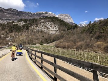 Altra proposta, un po’ più “avventurosa”: arrivare al parco in bicicletta partendo da Terlago. Lasciate l’auto al grande parcheggio del parco giochi e seguite la ciclabile fino a Vezzano, sono 7 chilometri solo andata (circa 40 minuti). L’andata è a tratti in discesa, quindi mettete in preventivo un po’ di fatica per il rientro. Arrivati all’abitato di Vezzano, proseguite fino in fondo al paese seguendo poi le indicazioni per il Teatro Valle dei Laghi.