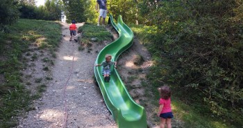 Gli scivoli in questo parco la fanno da padrone: ce ne sono tantissimi! Tra gli altri un maxi scivolo lungo lunghissimo (oltre 30 metri), che costeggia la collina e riporta in mezzo ai giochi. I bambini lo adorano… i genitori anche!