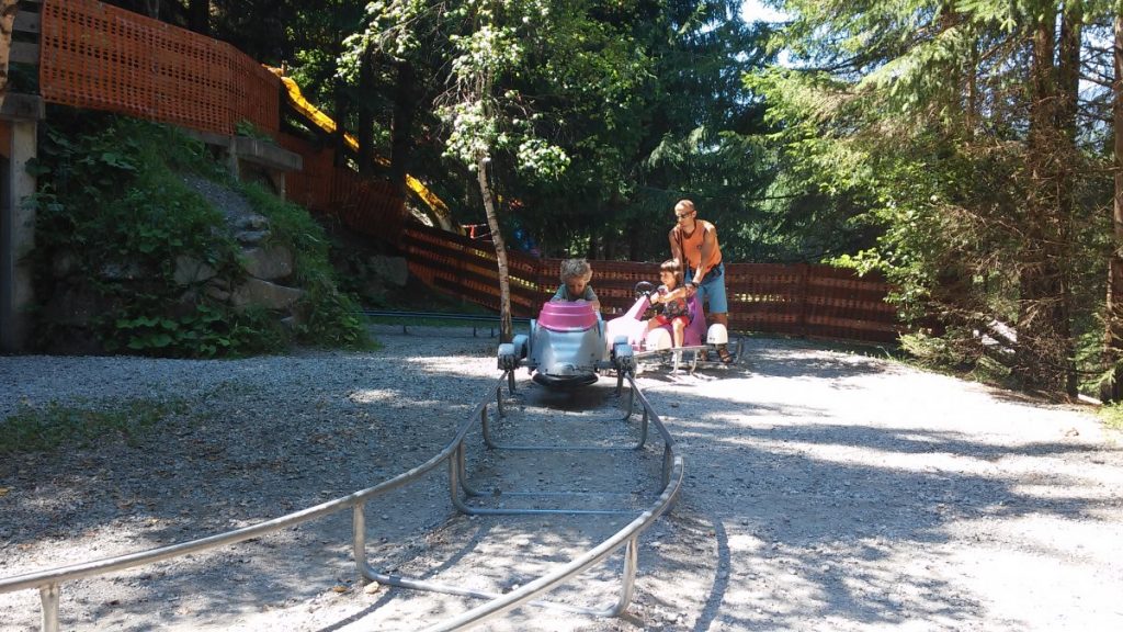 E quando pare che il divertimento sia finito ecco una pista con le macchinine su rotaia (ci si spinge pedalando) e un’area con i giochi per i più piccoli.