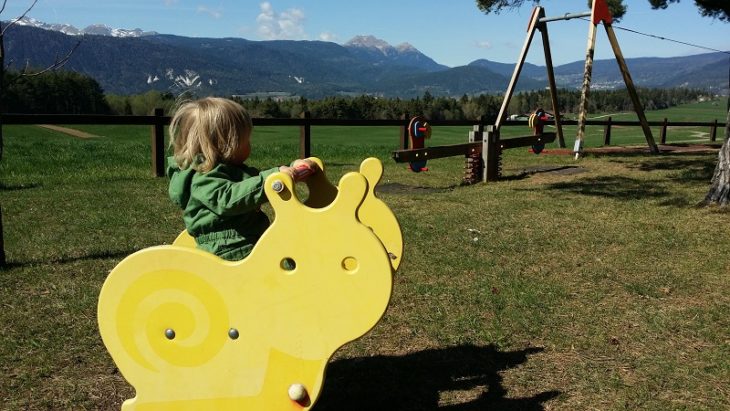 In località “Doss” di Romeno proprio all’imbocco della pista ciclabile dell’Alta Val di Non abbiamo trovato questo piccolo parco giochi senza grandi pretese che tuttavia ci è sembrato molto carino per alcune ragioni: