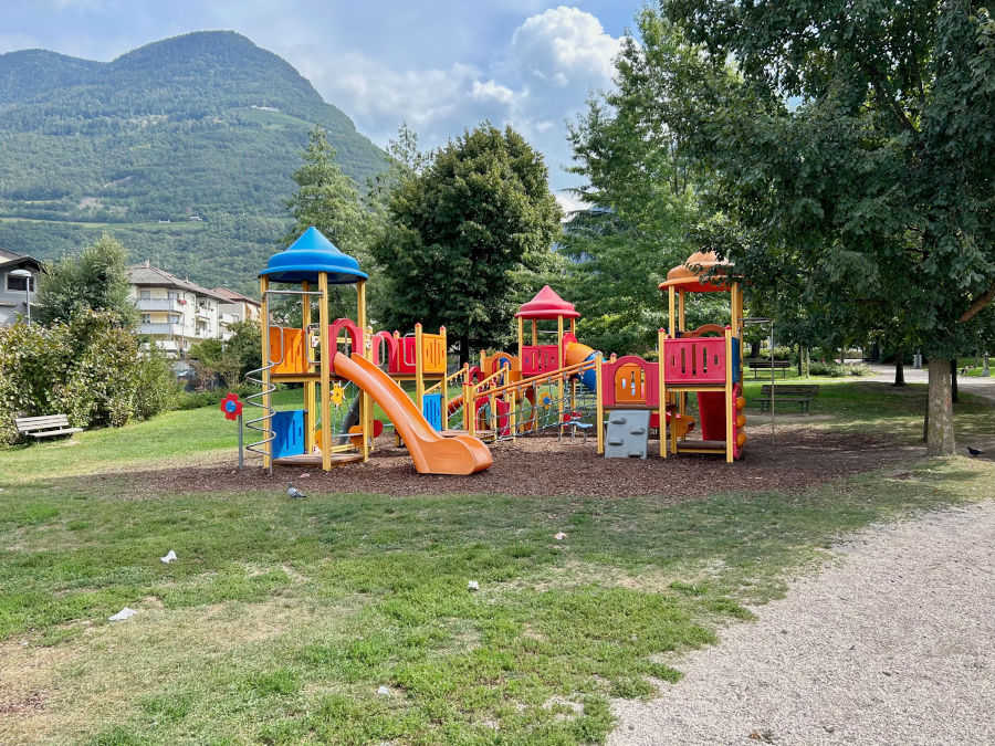 Una grande area verde recintata con tanti giochi vicino al centro di Laives, facilmente raggiungibile da Bolzano anche in bicicletta. All’ingresso del parco c’è una stradina che conduce alla ciclabile. Il parco si trova in via Marconi e dispone di un ampio parcheggio gratuito.