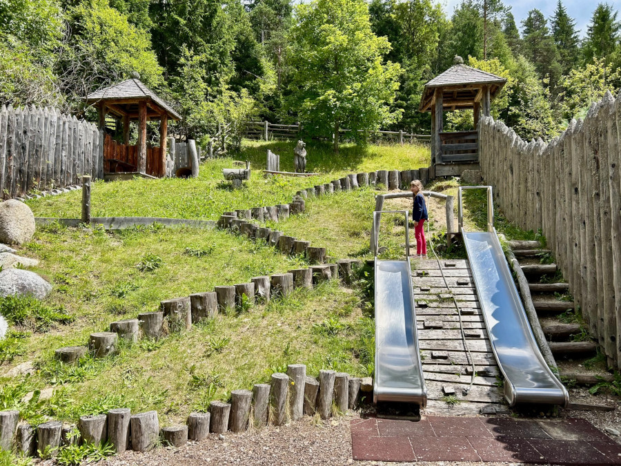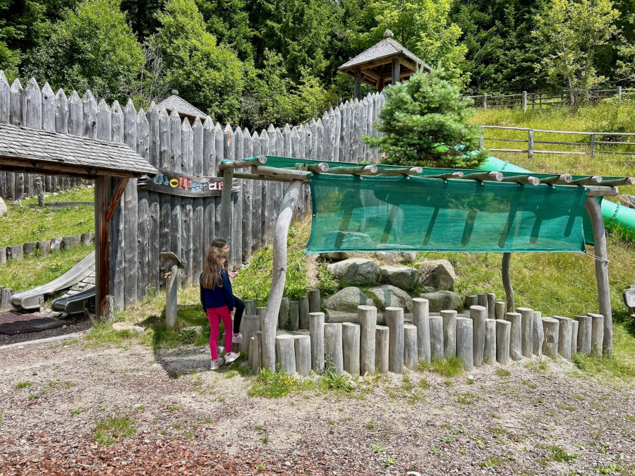 Il parco giochi a Perca, più precisamente a Villa di Sopra (1350 metri di altitudine), si trova a circa 500 metri dal parcheggio delle piramidi di terra. Meritano una visita sia per la suggestiva passeggiata nel bosco che per la loro bellezza, ne parliamo QUI. Quest’area giochi non è molto grande ma è davvero originale: pensate che è costruita all’interno di un fortino! Le varie attrazioni consentono di far divertire sia i bambini piccoli che quelli più grandicelli. Tappa vivamente consigliata dopo l’escursioni alle piramidi.