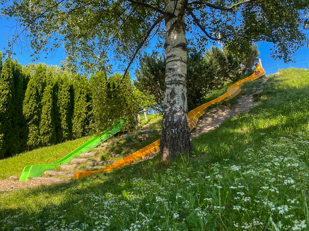 Un po’ nascosto, ma non dovete farvelo sfuggire, un lungo scivolo giallo.. super divertente! E poco più sopra un campo da pallavolo, sempre ad accesso libero!