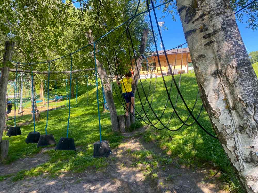 E poi ci sono numerosi giochi per arrampicare, scivolare, dondolare e tenersi in equilibrio. Le attrazioni con le corde, o le altalene a liana conquisteranno i bambini! Guardate che belle!