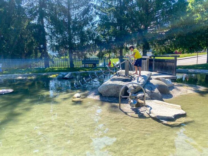 A Terento, delizioso paesino all’inizio della Val Pusteria, vi aspetta una bellissima area verde con tante attrazioni per i bambini. Può essere il posto perfetto per fare una pausa, o trascorrere un’intera giornata in relax. L’accesso è libero, con un comodo parcheggio gratuito. Sicuramente la parte che attirerà l’attenzione dei più piccoli è quella dedicata all’acqua. Un grande laghetto dove è possibile giocare con i meccanismi idraulici che piacciono tanto ai bambini (foto di copertina). E poi la zona con la sabbia, dove fare finta un po’ di essere al mare!