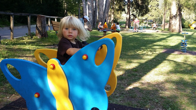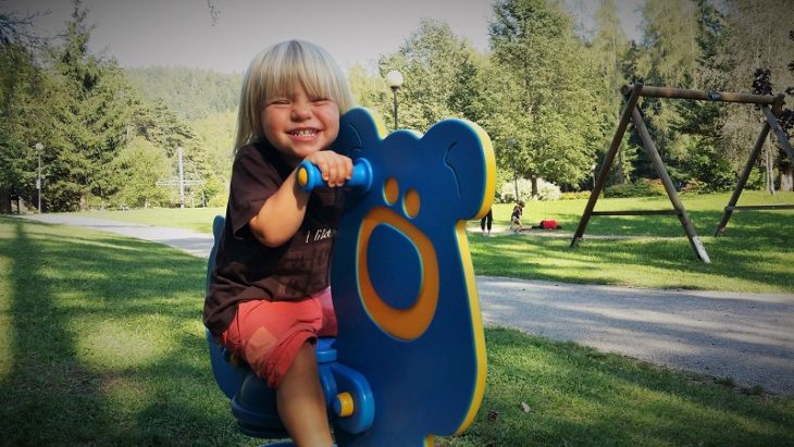 Il parco giochi di cui vi parliamo oggi è molto più che una semplice area attrezzata, possiamo definirla quasi come “una porta” che conduce in un luogo ricchissimo di attività per noi e i nostri bambini. Questo ampio parco si trova infatti all’ingresso dell’area ricreativa dei “Due Laghi” di Coredo e Tavon in Val di Non (solo una quarantina di minuti in auto da Trento), un posto che ci trasmette sempre un gran senso di relax. Gli ingredienti per stare bene ci sono tutti: i due piccoli specchi d’acqua con le rive verdi dove fare pic-nic, una bellissima passeggiata adatta anche ai passeggini, una buona pasticceria/gelateria e anche un soleggiato maneggio a due passi da qui, nell’abitato di Tavon (qui trovate il nostro articolo sui “Due Laghi” di Coredo e Tavon).