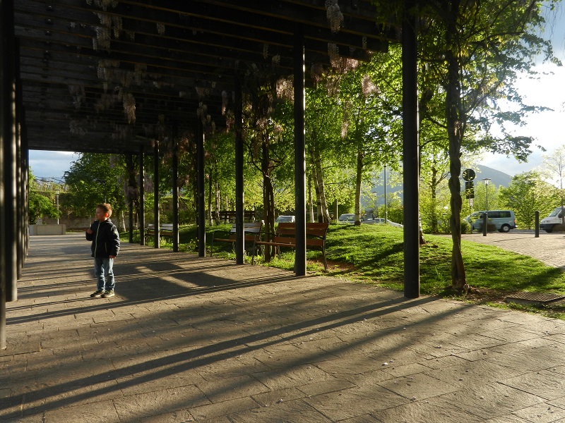 Lungo il perimetro del parco troviamo una comoda stradina, (ideale per fare addormentare i piccoli in passeggino), che porta fino al campo da calcio di Martignano e oltrepassa il nuovo asilo nido, inaugurato lo scorso anno, costruito completamente in legno, unico nella città di Trento ad essere inserito in un parco pubblico.