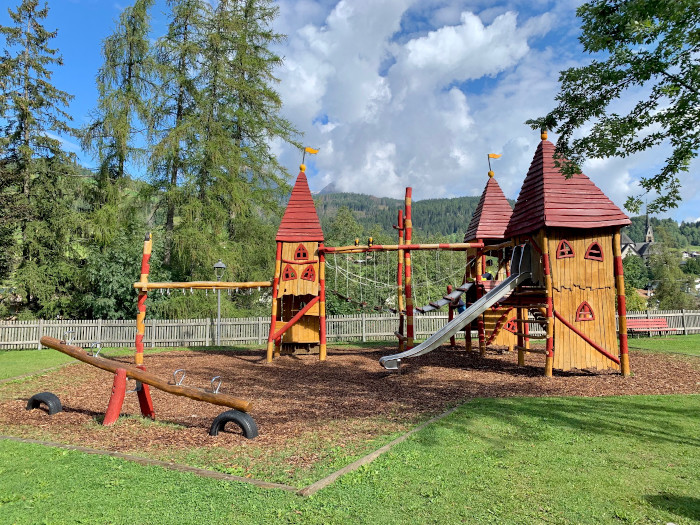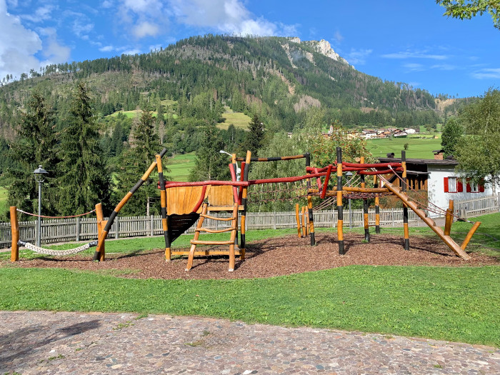 All’inizio del paese di Moena, lungo la Strada de Port de Mur, c’è un bellissimo e soleggiato parco giochi. Diverso da tutti quelli visti finora: è realizzato su tre livelli con giochi costruiti in legno e pensato per bambini di diverse età. Ci abbiamo trascorso un’intera mattinata dove le piccole si sono messe alla prova tra arrampicate e giochi di equilibrio.