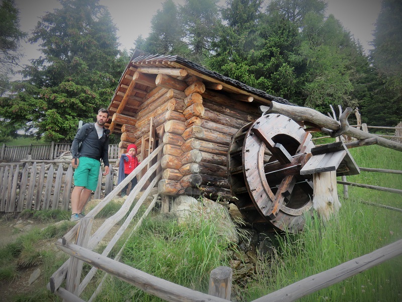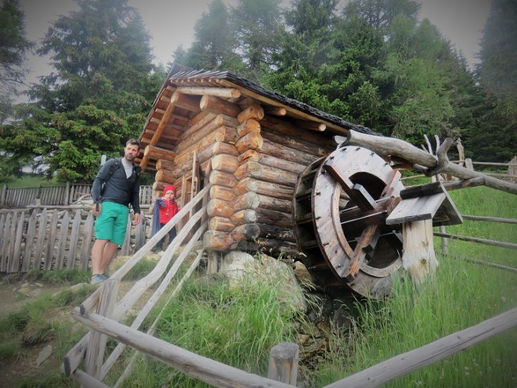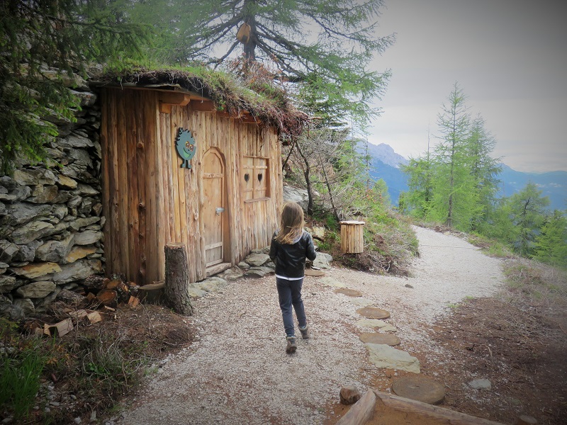 Altra trovata molto originale che ci è piaciuta moltissimo è l’invito a percorrere l’itinerario a piedi nudi (che coraggio! Noi ci abbiamo provato solo per qualche metro 😉 ). Tutto (e sottolineiamo tutto) l’anello è stato studiato per proporre una passeggiata alternativa a quello sterrato creato ogni volta con elementi naturali diversi: si va dal fondo fatto di ceppi di larice, a quello in pietra, a quello in trucioli di abete, a quello i sabbia di ardesia ecc. ecc. Un’idea bellissima davvero!