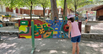 Una volta usciti dal Centro Visite del Parco ci si può fermare nell’adiacente parco giochi con carrucola e tappeti elastici: un vero spasso.
