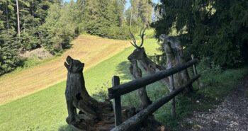 Molto carino, a tutte le età, è anche il percorso sensoriale, che risveglia i canali di percezione permettendo di rivivere sensazioni ed emozioni dimenticate. Il contatto della pianta del piede con terra, foglie, legno, sassi e acqua è capace di stimolare tatto, udito, vista e olfatto, e generare un rinnovato equilibrio. Undici le “stazioni”, con tanti materiali diversi (sassolini, cortecce, sassi più grandi, tronchi in legno, acqua che scorre) da percorrere rigorosamente scalzi. Il percorso può essere fatto in totale autonomia ed è anch’esso ad accesso libero e gratuito.