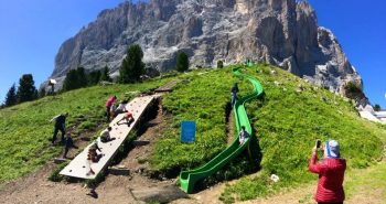 Su un grande sasso ecco una piccola palestra di roccia e il tunnel: tantissimi giochi in tutta sicurezza! Qui si mangia davvero bene: noi abbiamo assaggiato i canederli, la polenta e salsiccia e l’ottimo strudel.