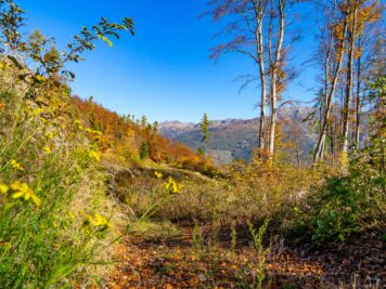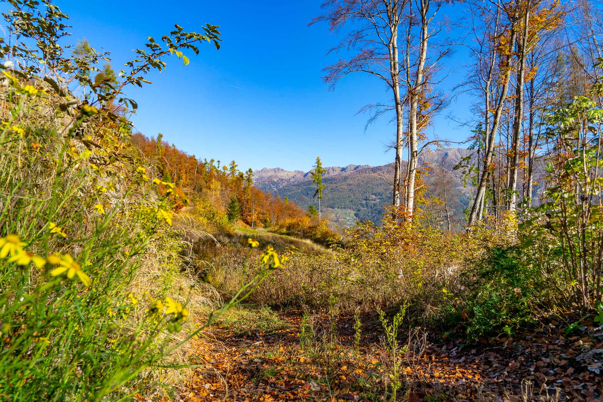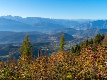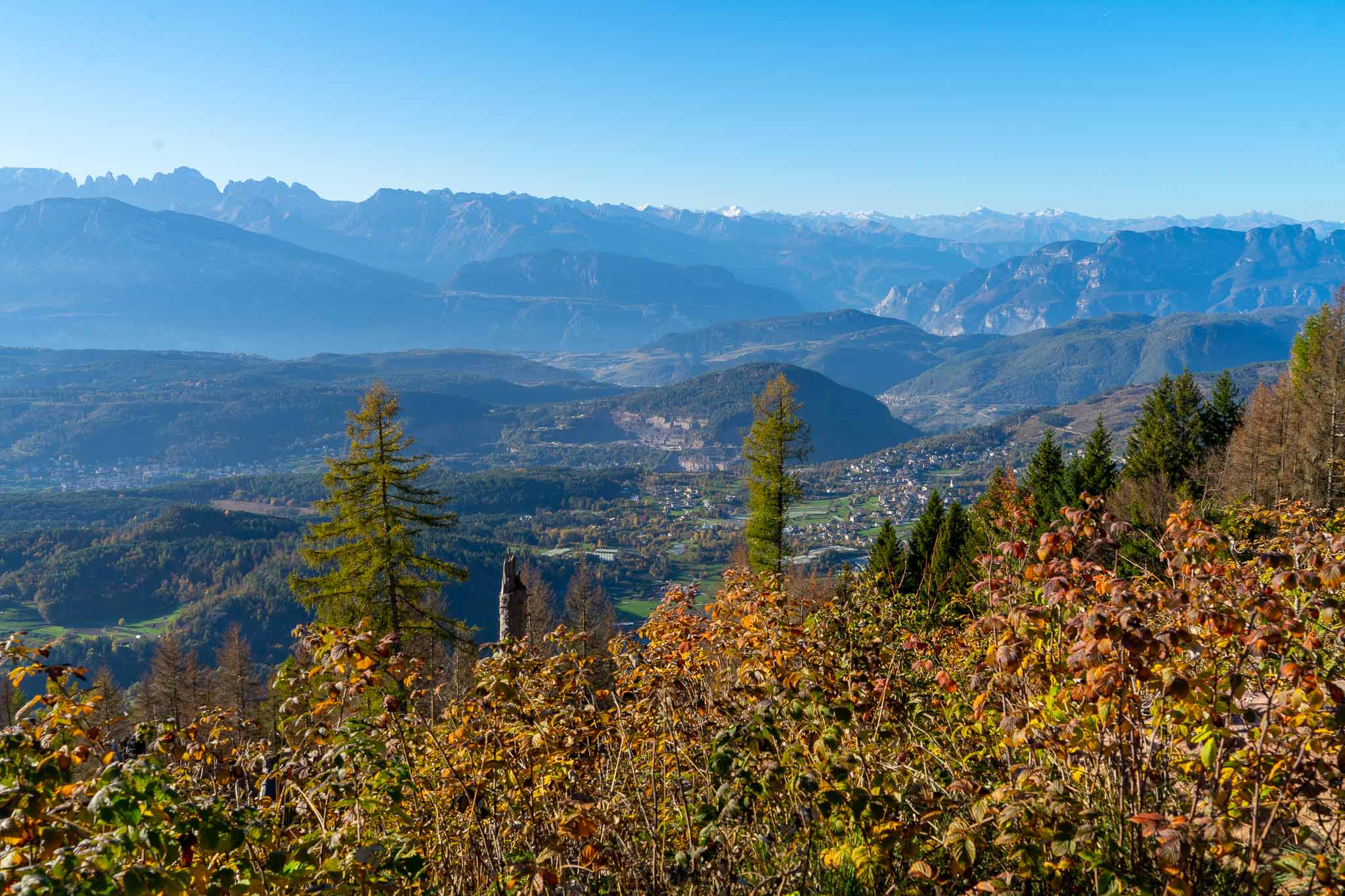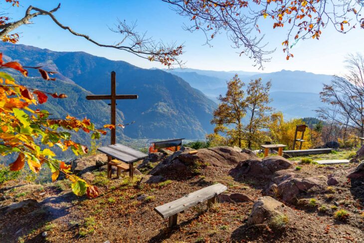 Prima dell’ultima salita fermatevi ad ammirare lo spettacolo delle Dolomiti di Brenta sulla vostra sinistra. Il percorso è adatto ai bambini ed è poco frequentato: motivo in più per apprezzare la natura circostante in tutta tranquillità. Il punto panoramico che si raggiunge in circa un’ora di passeggiata è molto bello. Qui potete trovare molte panchine e alcuni tavolini, se optate per il pranzo a sacco. Potrete ammirare, in tutta la sua bellezza, la Valle dei Mòcheni con i monti Gronlait e Fravort, parte della Valsugana con il lago di Caldonazzo, ma anche la Panarotta e la Vigolana.