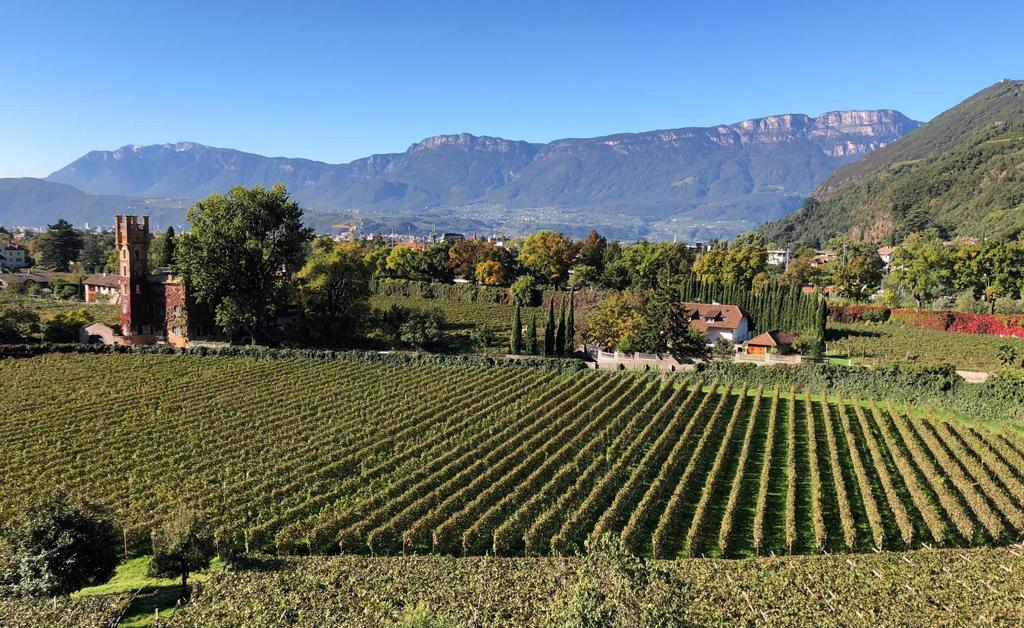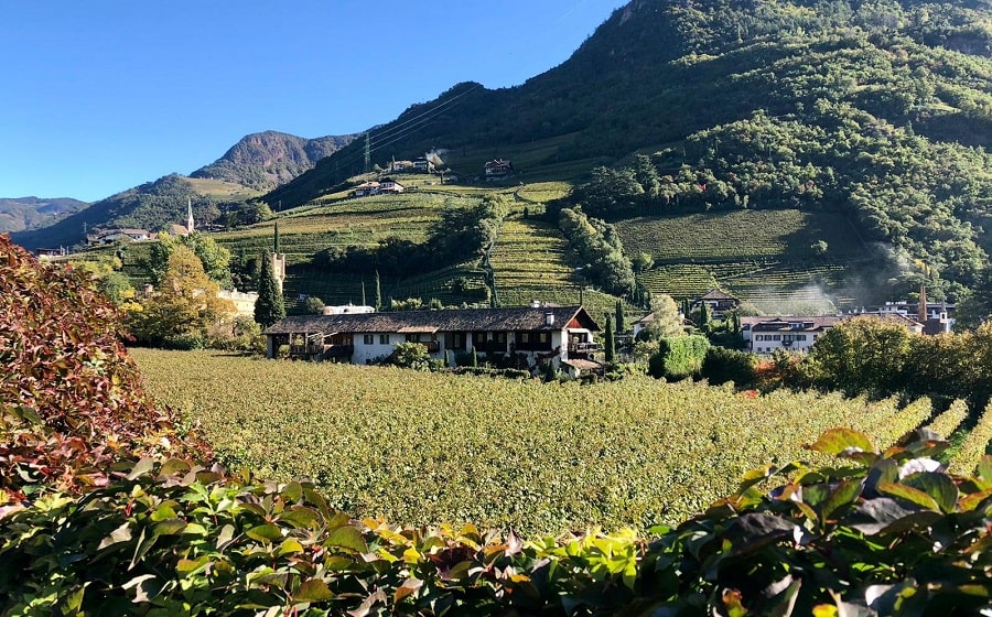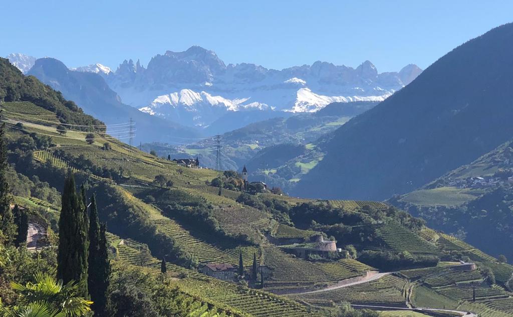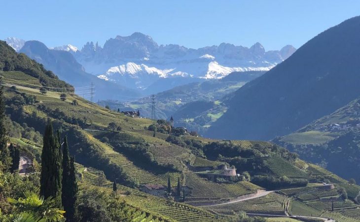 La vista è notevole, terrazzamenti di viti si alternano con antiche dimore, poi il Talvera e poi la città di Bolzano.