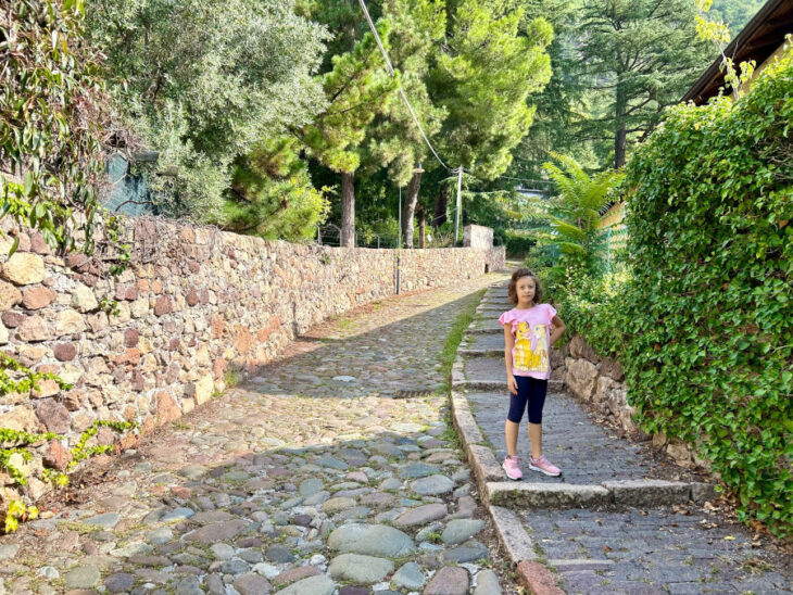 Alla nostra sinistra il rumore del fiume ci fa compagnia: osserviamo le architetture delle case, gli antichi masi e in circa 10 minuti arriviamo a S.Antonio. Giriamo quindi dove ci appare la scritta passeggiata di S.Osvaldo. Un glicine centenario ci accoglie e ci accompagna per un po’ lungo il tragitto, torneremo a vederlo in primavera fiorito! Iniziamo a salire a zig zag e piano piano cominciamo ad ammirare il paesaggio dall’alto.