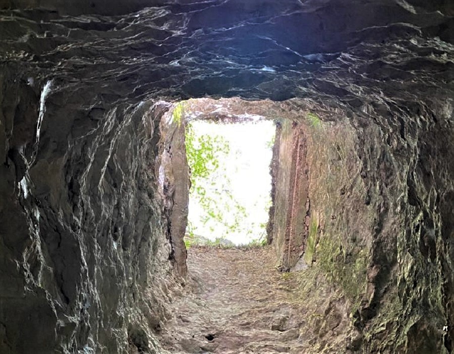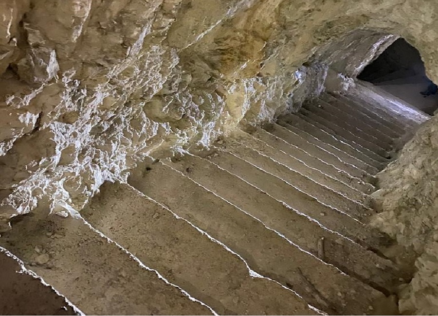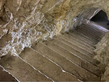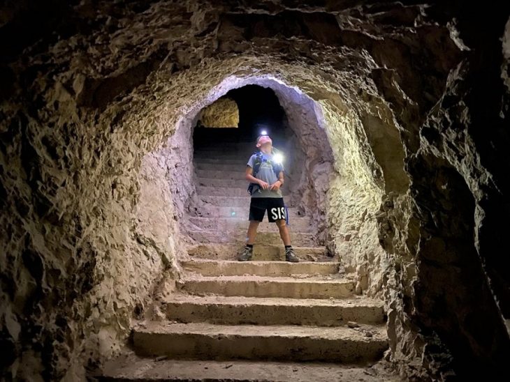Si entra nella roccia e si trovano due scale che salgono: quella di sinistra sono i famosi 100 scalini, un sentiero cieco che arriva ad un “camino” verticale che mette in comunicazione con l’esterno. Controllate sulle pareti, potreste incappare nei messaggi lasciati da chi ha attraversato queste gallerie oltre un secolo fa.