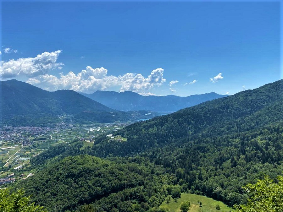 Dopo questo momento di riposo potete decidere di finire la passeggiata e arrivare in 20 minuti (il sentiero qui in alcuni punti è particolarmente ripido, ma sicuro e di certo avventuroso per i bambini ) fino alla cima del monte Celva dove vi aspetta una vista a 360 gradi, sulla città capoluogo, la catena del Brenta, su Pergine, sui monti del Lagorai, sul lago di Caldonazzo.