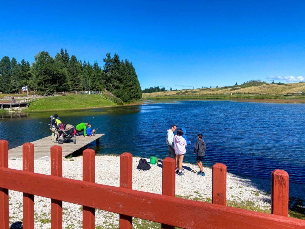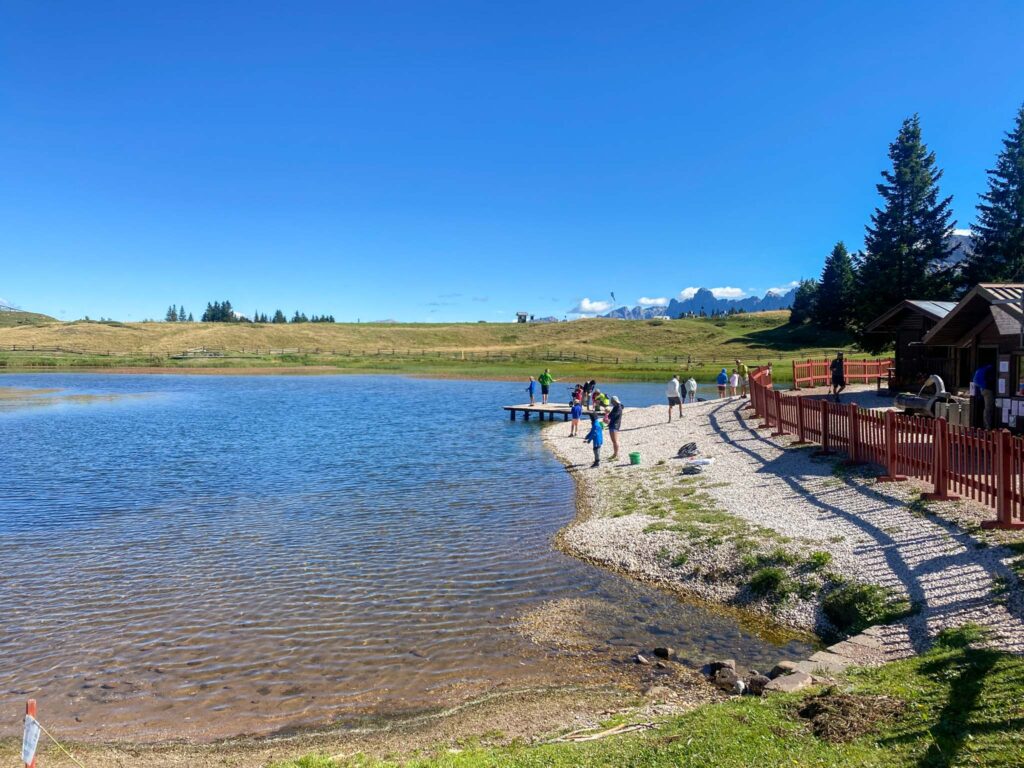 Se invece di camminare volete rimanere nei pressi del Passo, divertente anche con i più piccoli la possibilità di pescare trote iridee nel laghetto alpino. Disponibilità di noleggio canne, fornitura di esche o utilizzo di propria attrezzatura, attività aperta solitamente da metà giugno a metà settembre con orario 9 – 12.30 e 13.30 – 18.