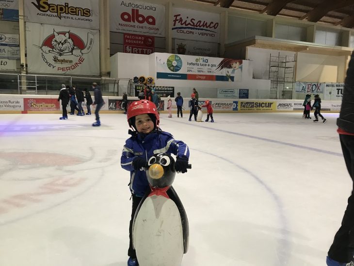 … e i tanto amati “pinguini“, quei comodi supporti a forma di pinguino, appunto, che aiutano a restare in piedi e a “scivolare” in tranquillità finché non si prende confidenza con pattini e ghiaccio!