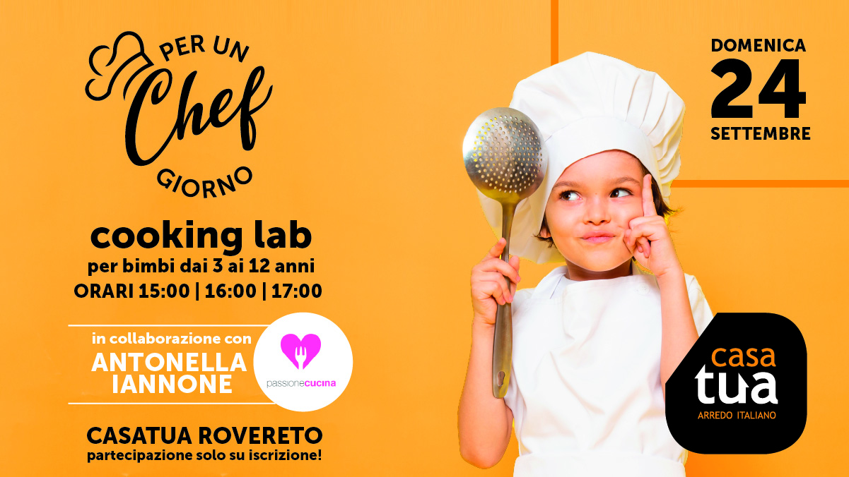Avete dei bambini appassionati di cucina? Cercate un pomeriggio diverso dal solito? Segnatevi l’appuntamento di domenica 24 settembre a CasaTua di Rovereto (Via del Garda, 2000). Arriva infatti un originale cooking lab dedicato ai più piccoli, con protagonista la mela. Esorcizzare il temuto rientro sui banchi di scuola si può, grazie anche a Antonella Iannone che insegnerà ai bambini tre golose ricette.