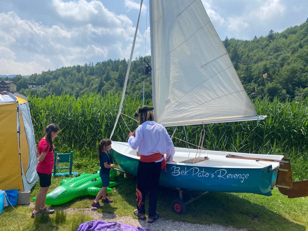 Novità dell’estate 2021 sul lago di Lavarone: si va in barca a vela con una proposta davvero entusiasmante per i più piccoli! La proposta è di Punti di Svista, realtà che riesce a coniugare bene l’animazione e la bellezza di questa esperienza che solitamente si fa al mare o in specchi d’acqua più grandi. Ma questo lago, oltre ad essere bellissimo, presenta condizioni di vento interessanti: in continuo mutamento, capaci quindi di mettere alla prova anche i più esperti. Sulla barca, chiamata Bek Pato’s Revenge in onore sia del vascello (Queen Anne’s Revenge) che del vecchio pirata Barbanera, si sale al massimo in quattro, oltre che al comandante Stefano. Sarà lui ad incantare i più piccoli con la sua esperienza introno al mondo e con il suo modo di fare.
