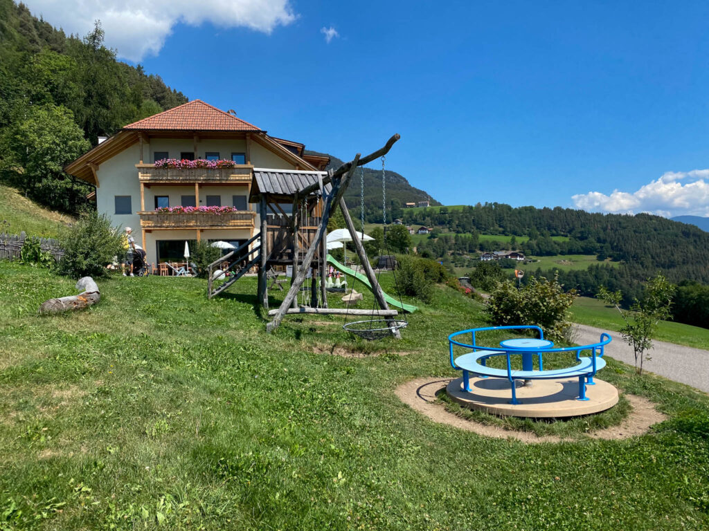 Noi abbiamo seguito le indicazioni per Maria Saal, che abbiamo oltrepassato fino al Maso Egarter, (tel. 348.0945291) che fa parte del circuito Gallo Rosso, perfetto per i bambini per i tanti giochi che ci sono. Oltre alle giostre, alle altalene e alla torretta con scivolo, infatti, si possono utilizzare i trattori grandi e piccoli che permettono ai bambini di simulare la vita contadina.