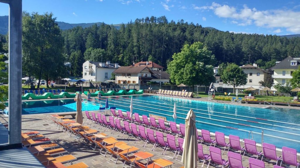 Ha una vasca olimpionica da 50 metri dedicata soprattutto a quelli che del nuoto ne fanno uno sport, anche d’estate (molto richiesta anche da scuole di nuoto della Val Pusteria). Per le famiglie con bimbi piccoli non manca un’area baby con piscina dedicata: babypool per i piccolissimi e vasca per bambini, oltre che un bel parco giochi e un grande prato su cui sdraiarsi, ma anche giocare e organizzare picnic all’aria aperta.